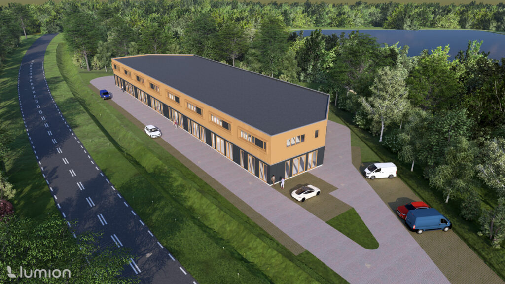 Aan de Noordholt in Roden verrijst bedrijfsverzamelgebouw Vlasveen: een modern en representatief complex met 18 units. Het plan biedt een sterke mix van zichtlocaties voor showroom/retail aan de voorzijde en efficiënte logistiek aan de achterzijde. De locatie heeft een uitzonderlijke attentiewaarde: de voorgevels liggen aan de drukke toegangsweg Noordholt met meer dan 10.000 auto’s per dag. Daarnaast zijn de snelwegen A7 en A28 vlot en eenvoudig bereikbaar. Uniek is de ligging aan de kanovijver: een rustiek stukje natuur met water en wandelpaden — fijn voor werknemers én klanten.